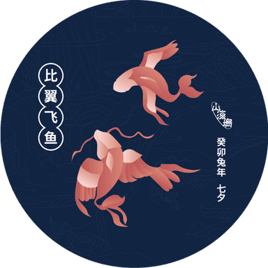 「银汉波涛如织,比翼飞鱼穿梭。」 #山海坞 #七夕 限定徽章 ——比翼飞鱼